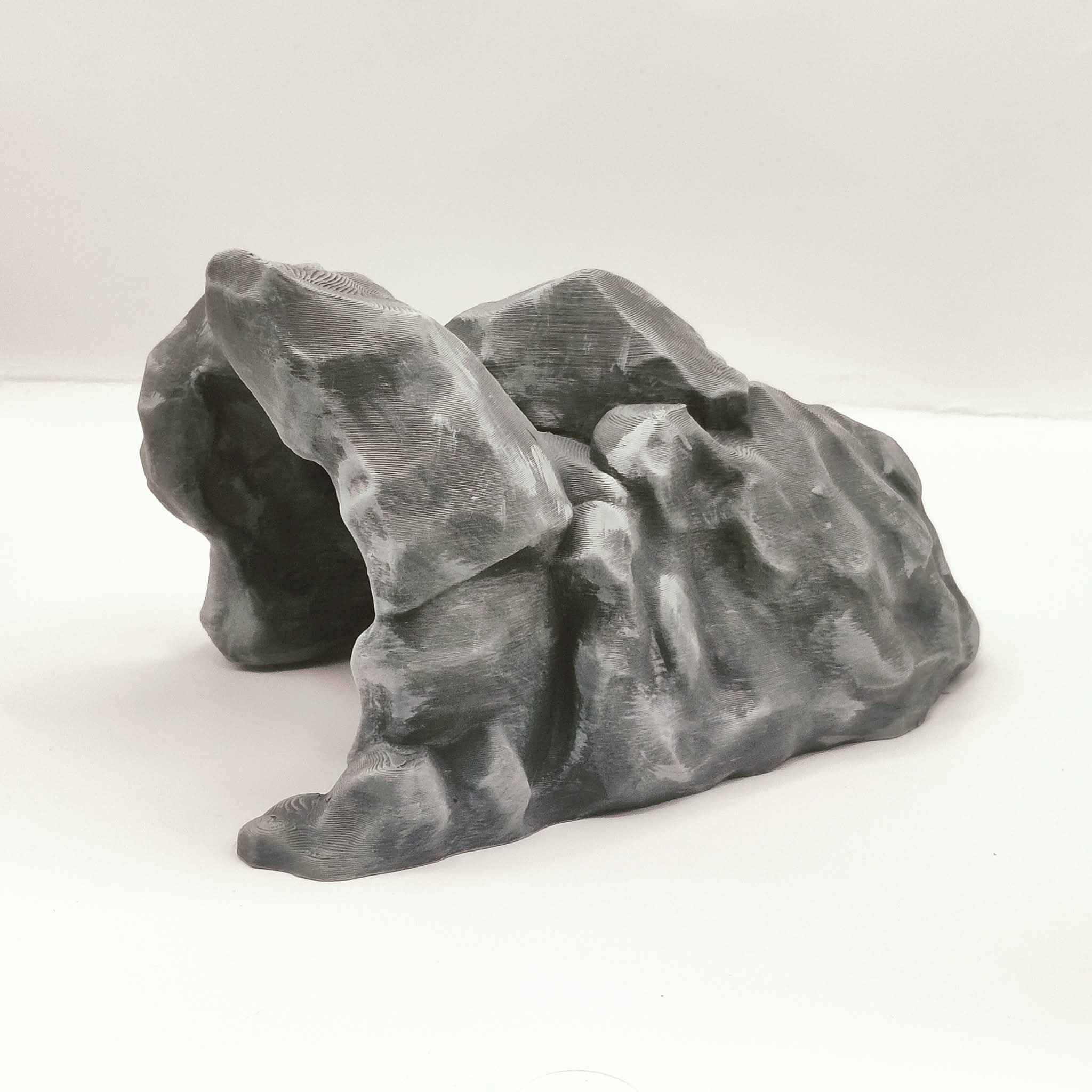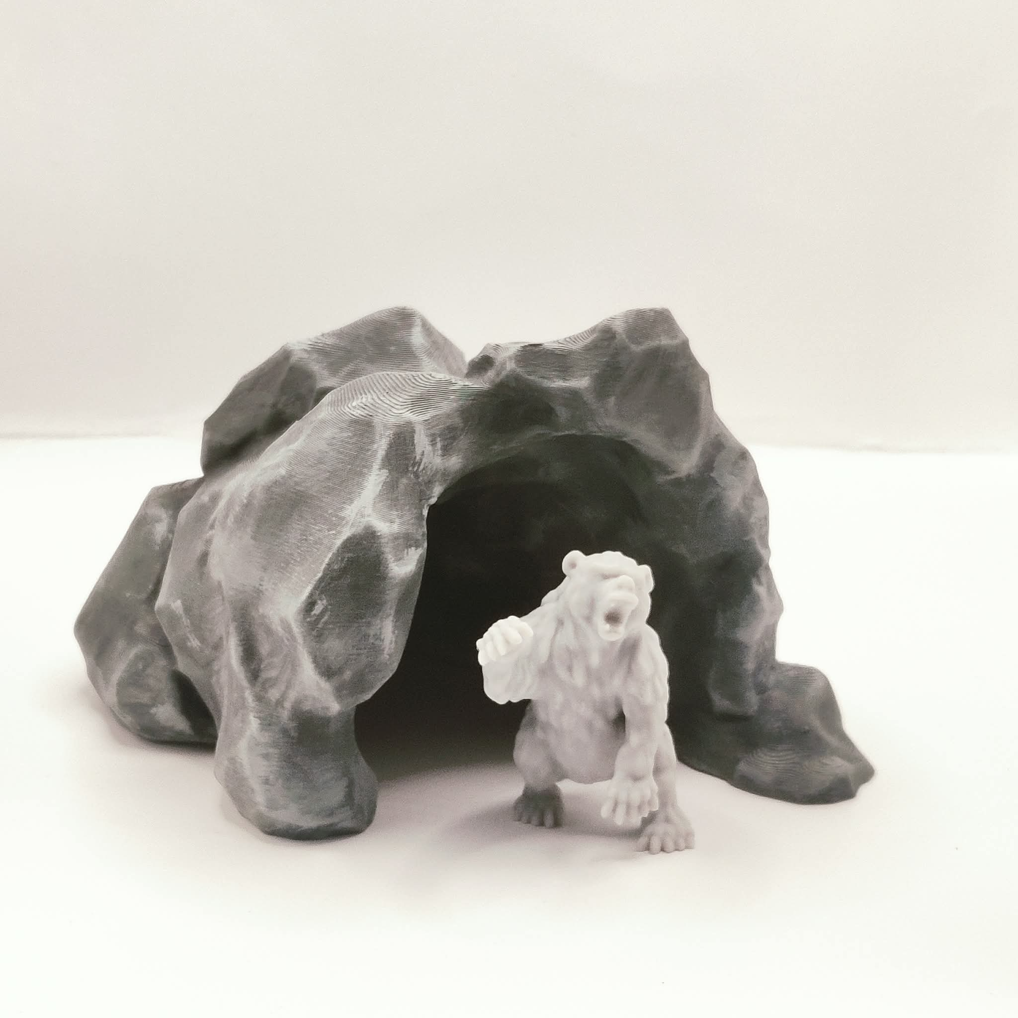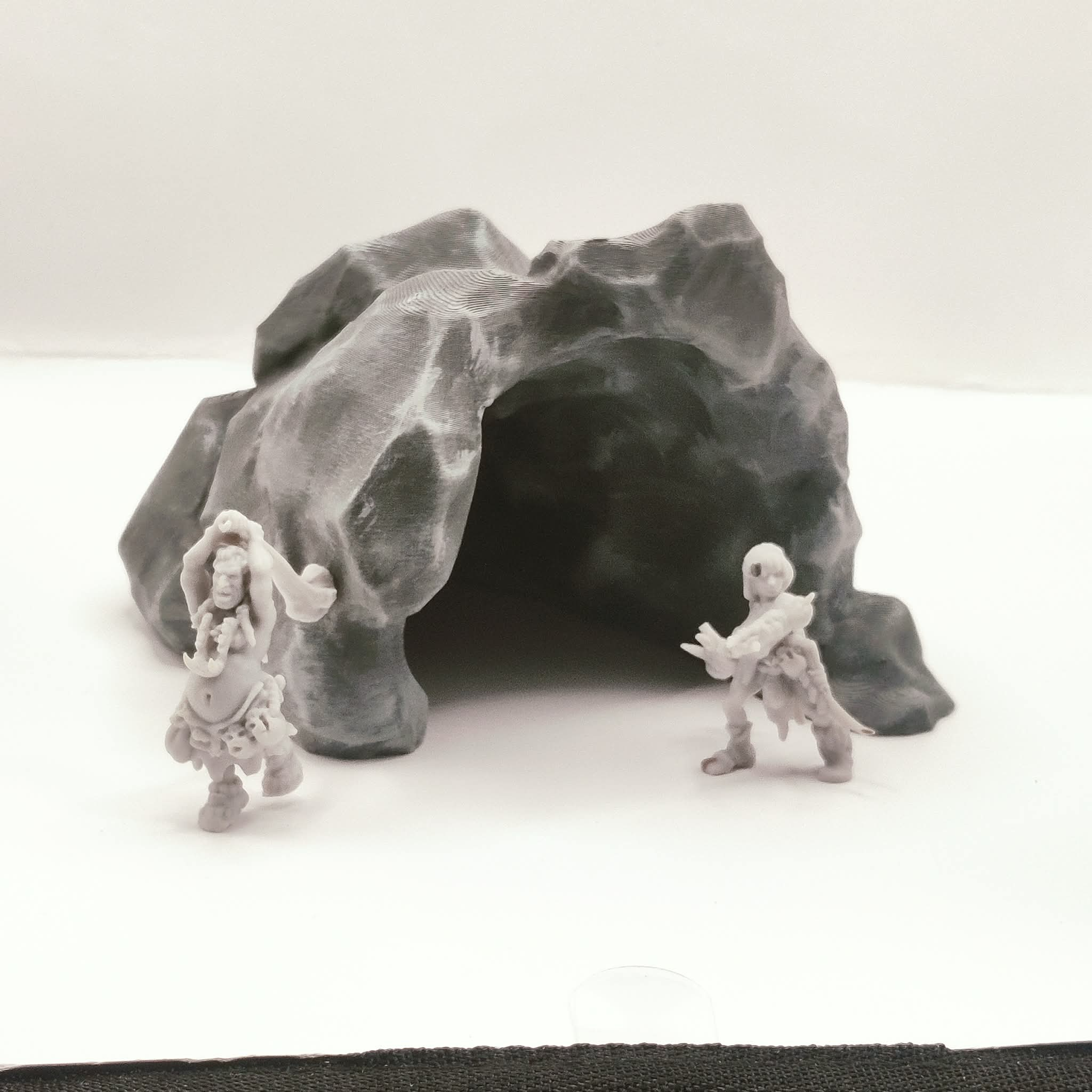 A large cave intended for use as a terrain piece or centrepiece element in tabletop role-playing and skirmish games. Suitable for wilderness encounters, creature dens, and dungeon entrance scenes.