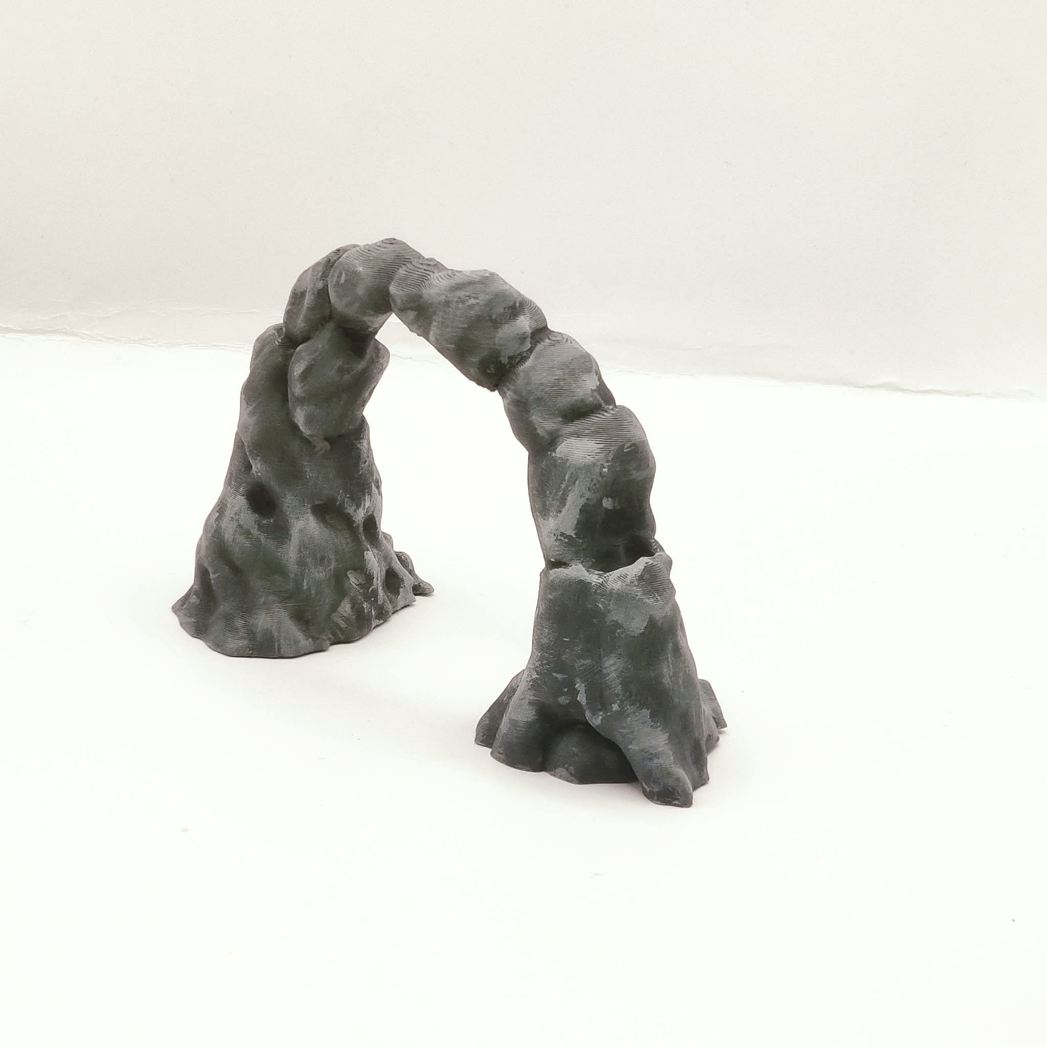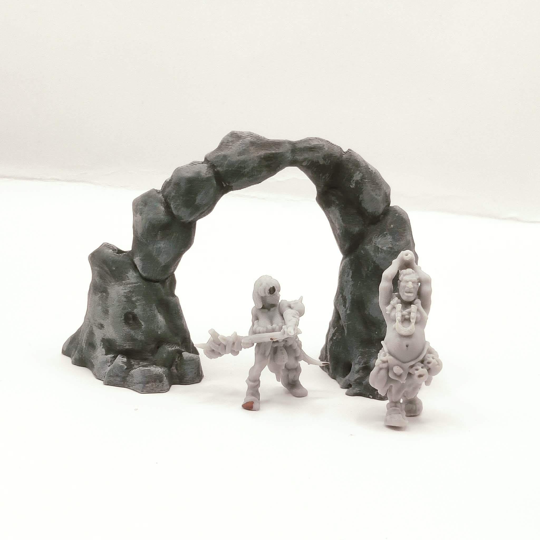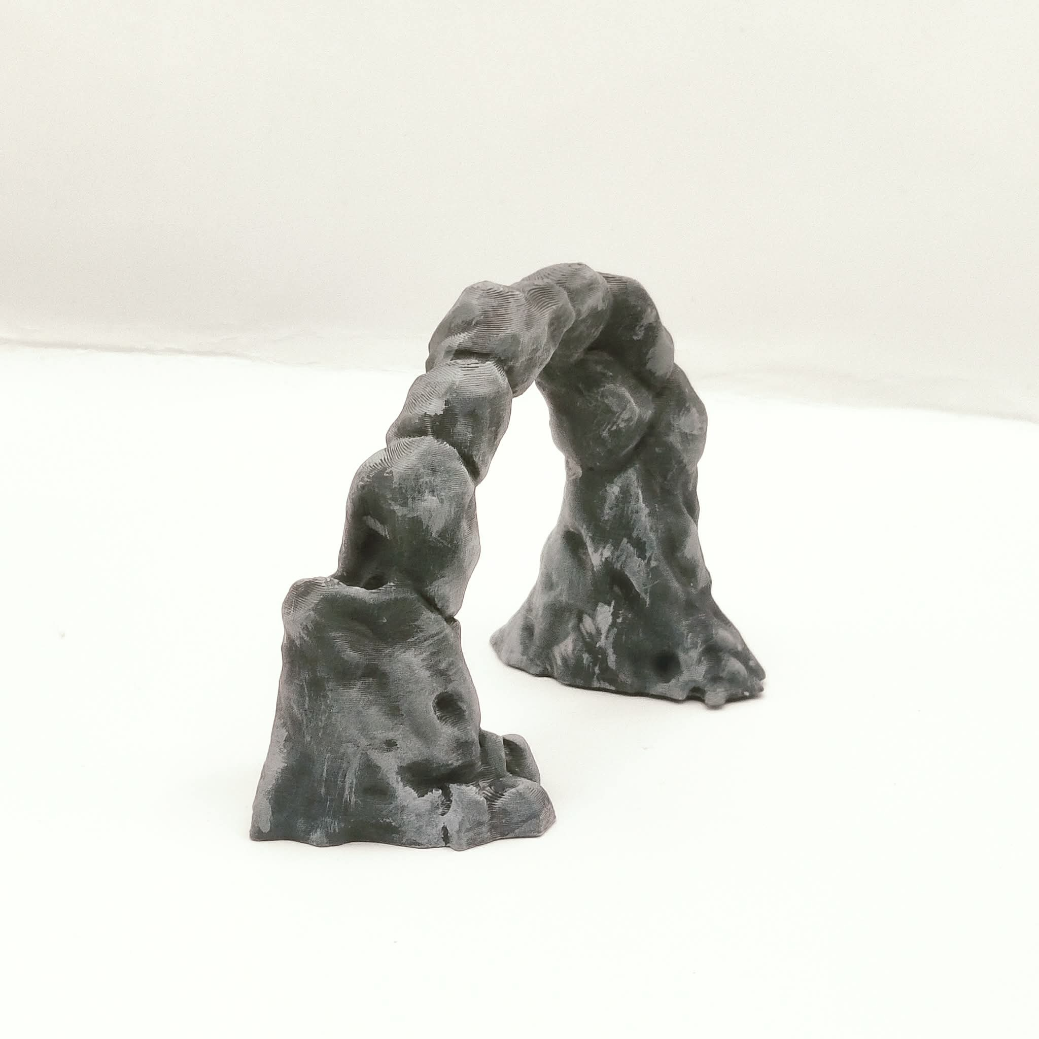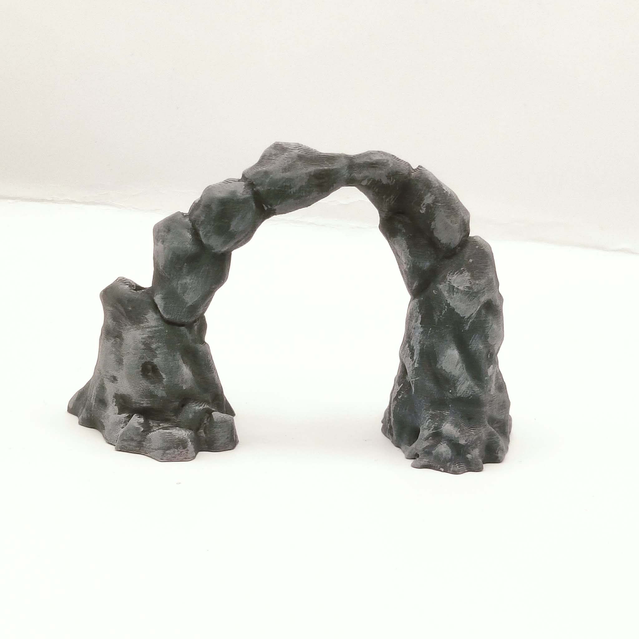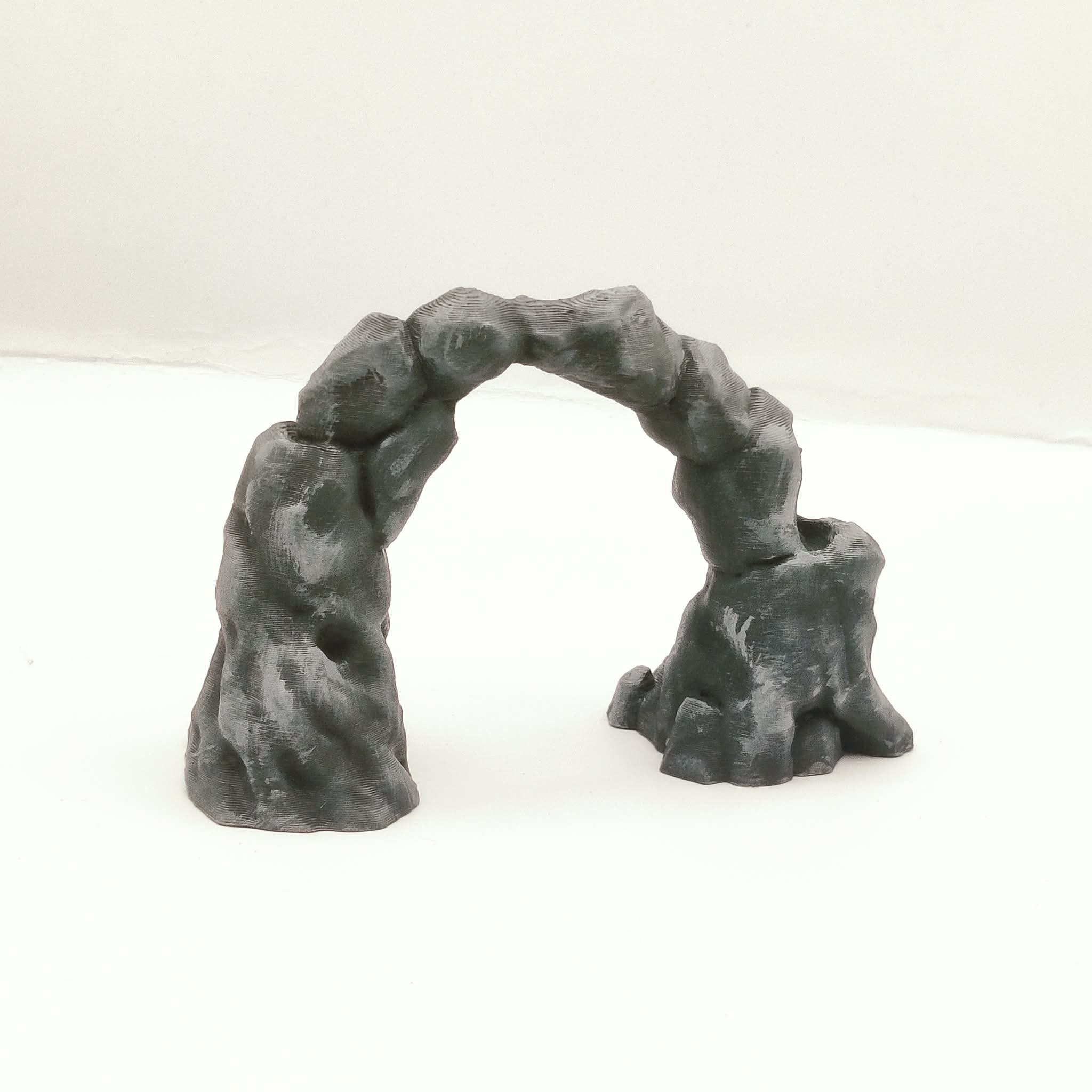 A small stone arch intended for use as a terrain piece or scatter element in tabletop role-playing and skirmish games. Suitable for ancient ruins, natural rock formations, and objective-based encounter scenes.